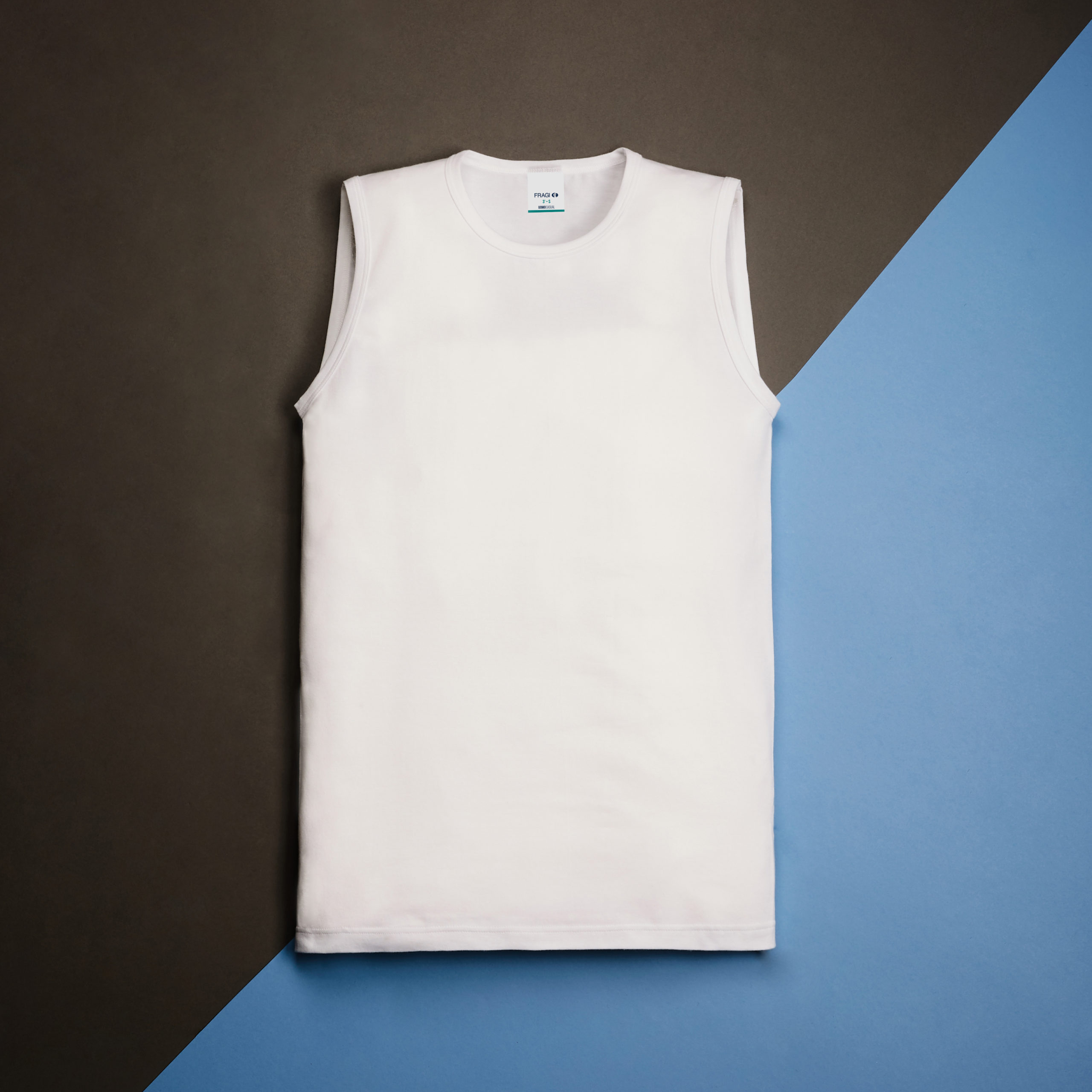 Maglia smanicata girocollo senza cuciture sui fianchi in cotone elasticizzato