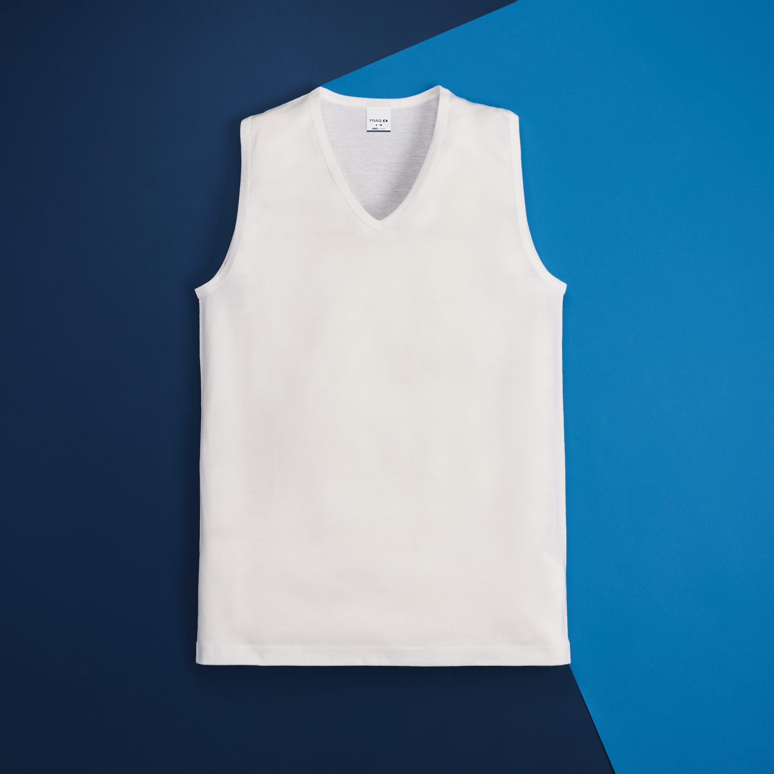 Maglia smanicata scollo v senza cuciture sui fianchi in puro cotone