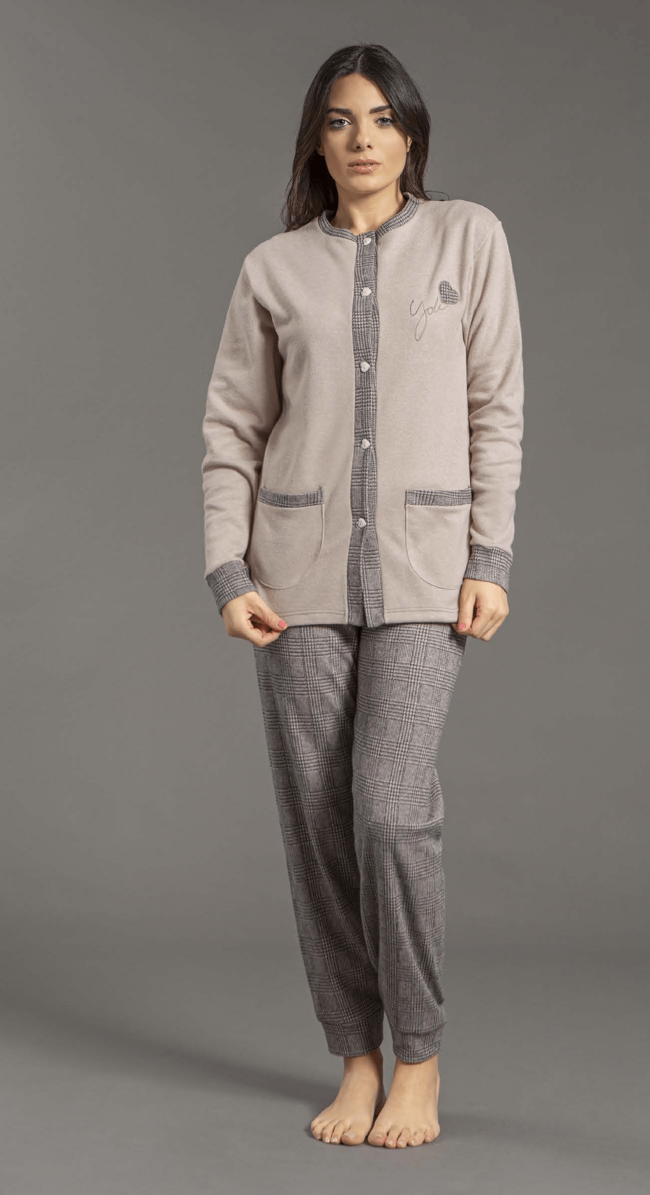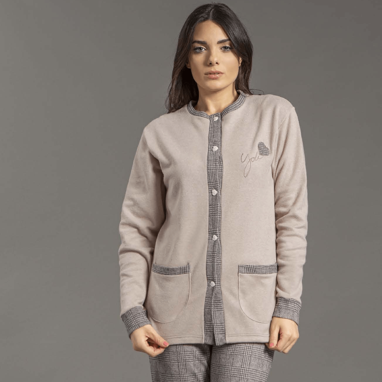 Pigiama con giacca aperta in caldo punto milano.