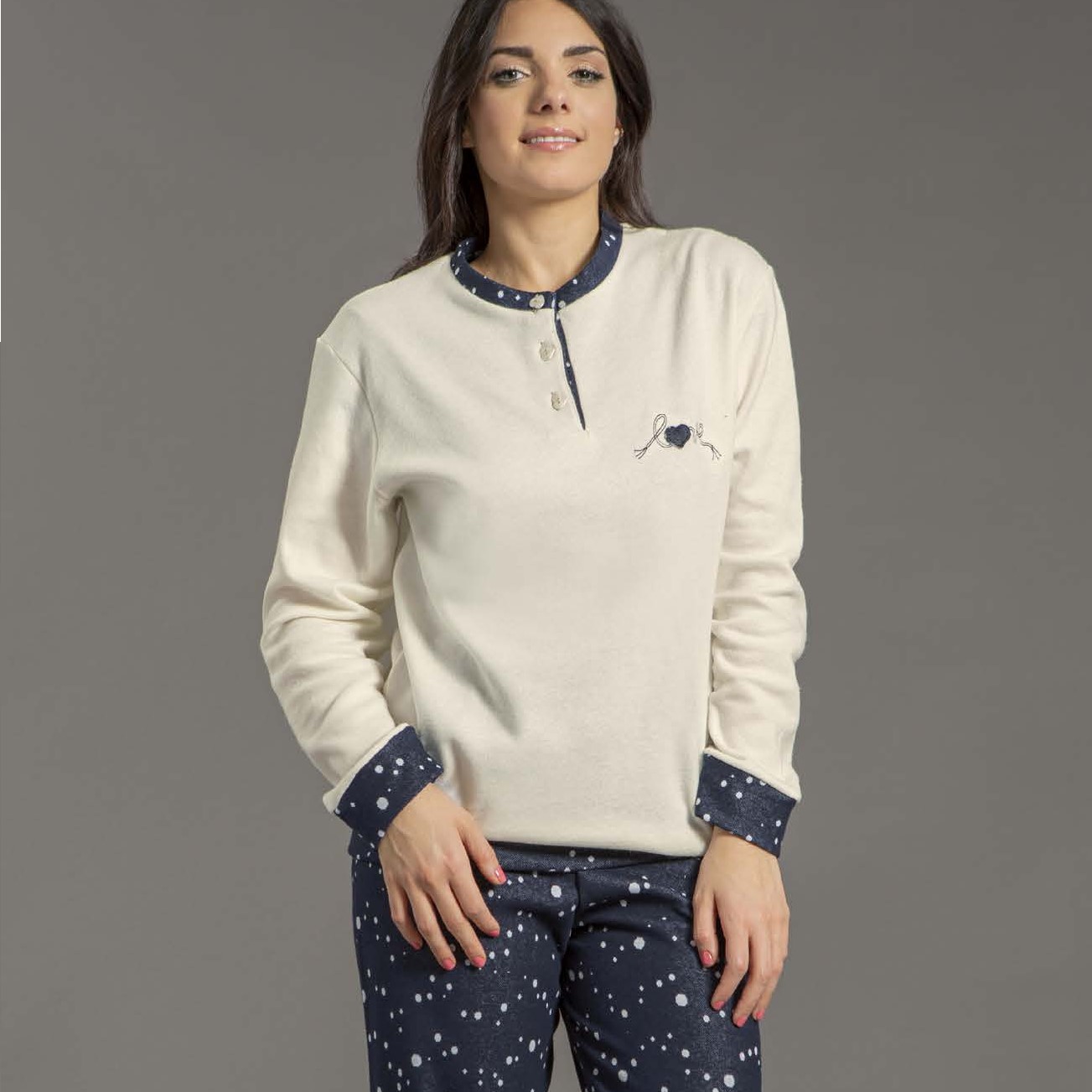 Pigiama serafino in caldo cotone punto milano.