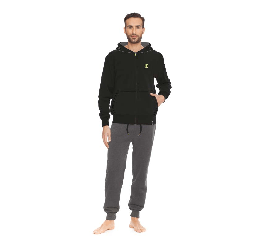 Tuta in felpa con cappuccio e cerniera, ideale per relax e tempo libero.