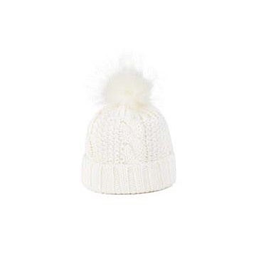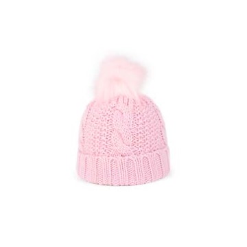 Cuffia neonato con treccia e pom pon in ecopelliccia.