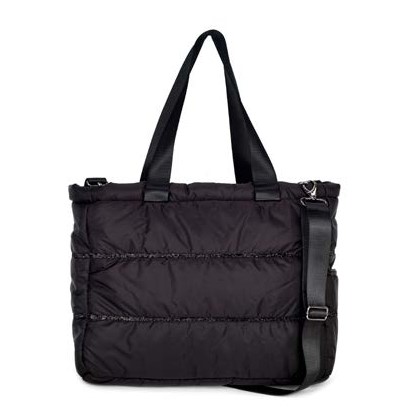 Borsa nylon con lurex e tracolla.