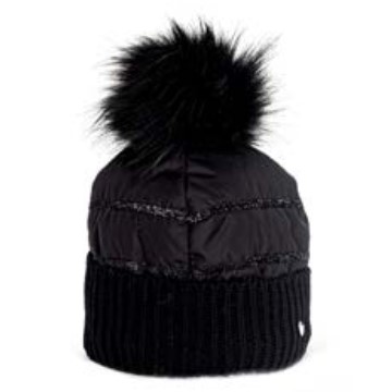 Cuffia donna in nylon con lurex e risvolto in maglia.