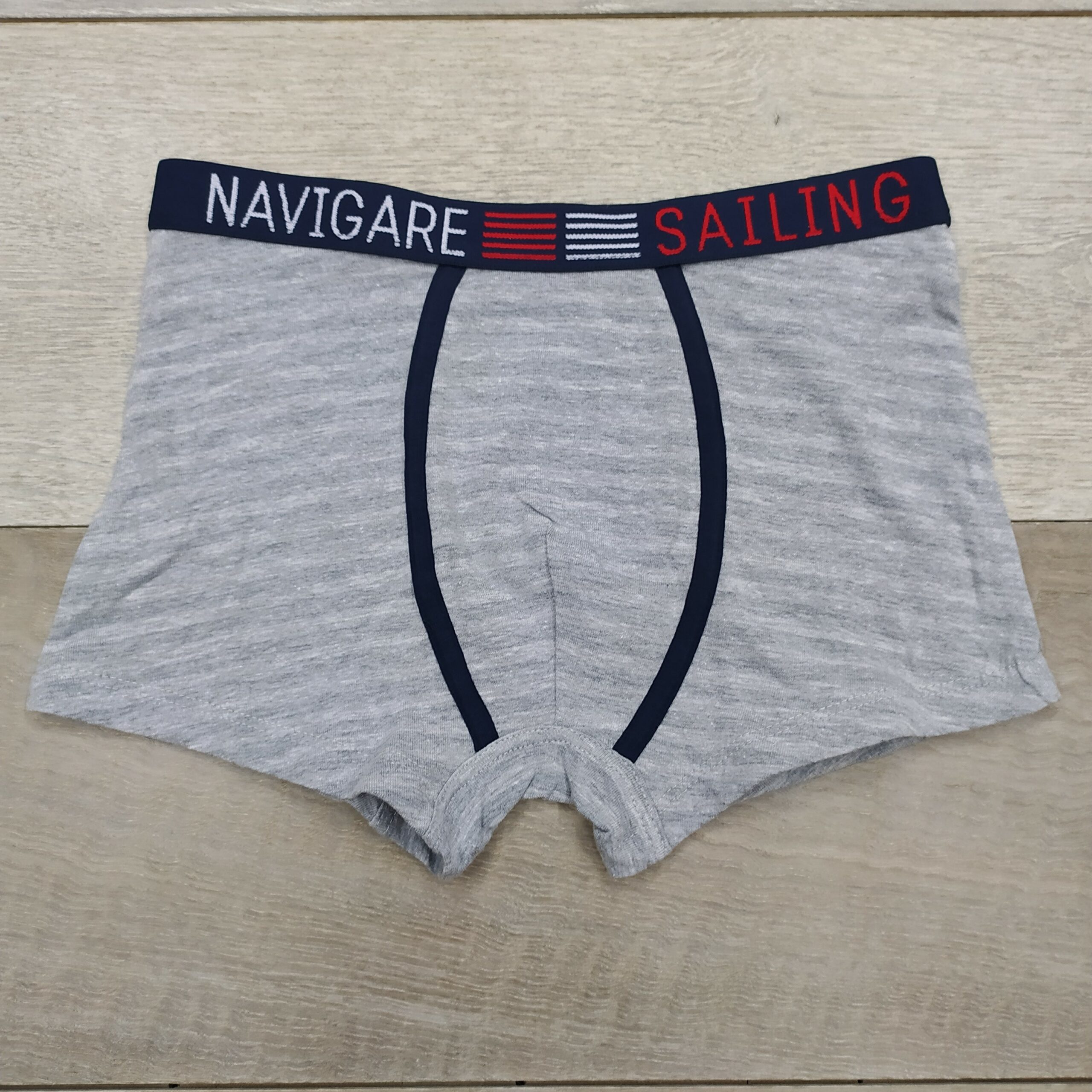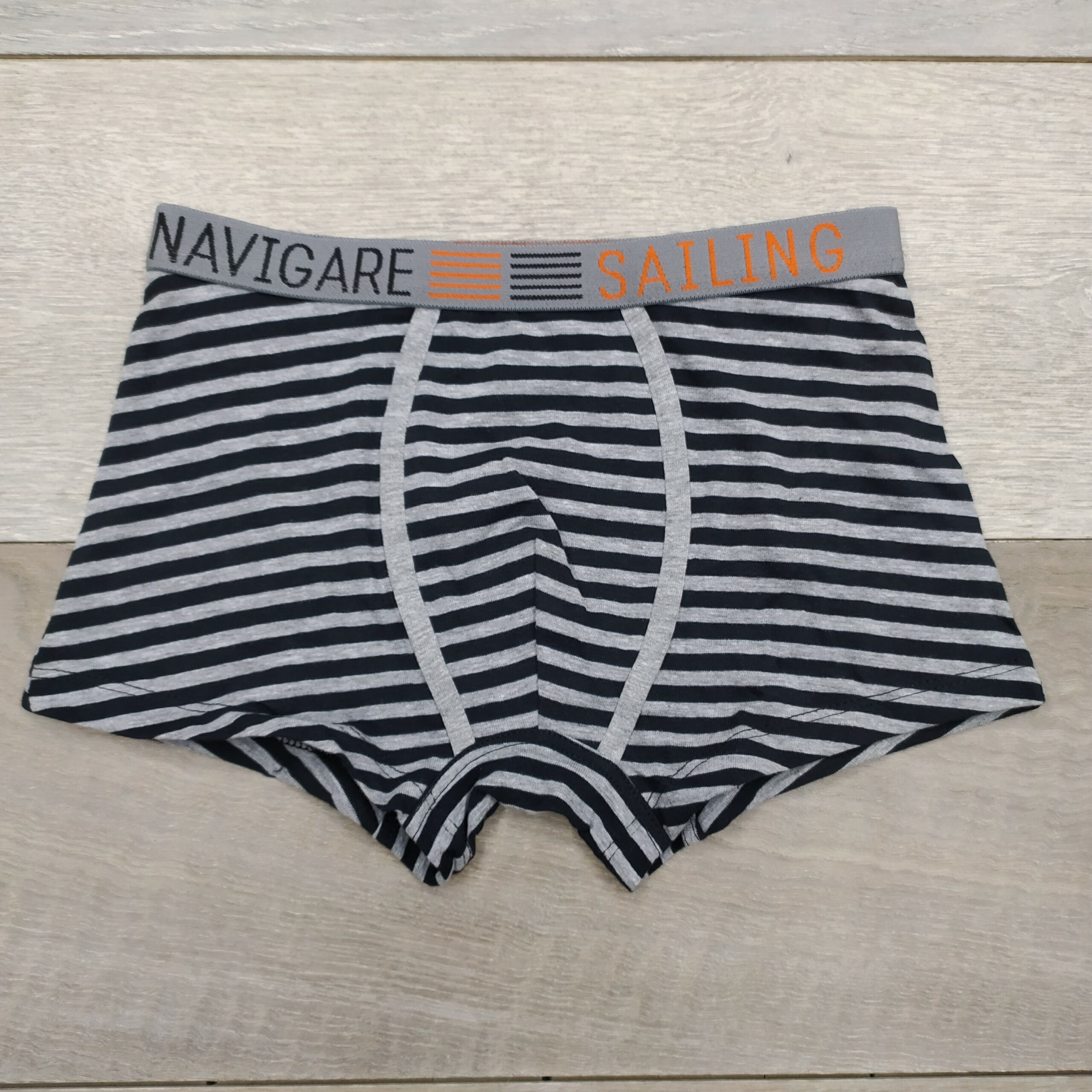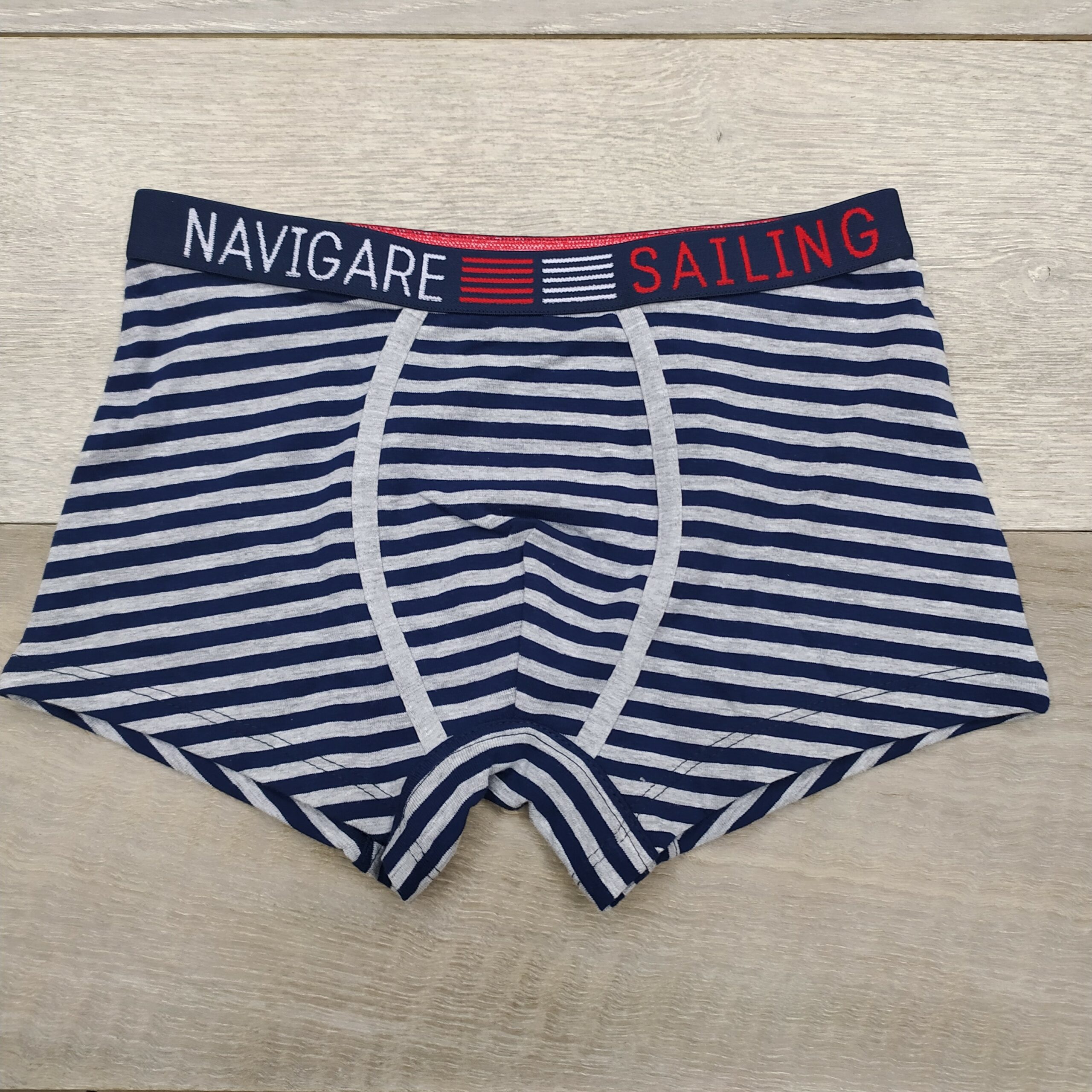 Boxer rigato in cotone elasticizzato con banda elastica con scritta navigare sailing