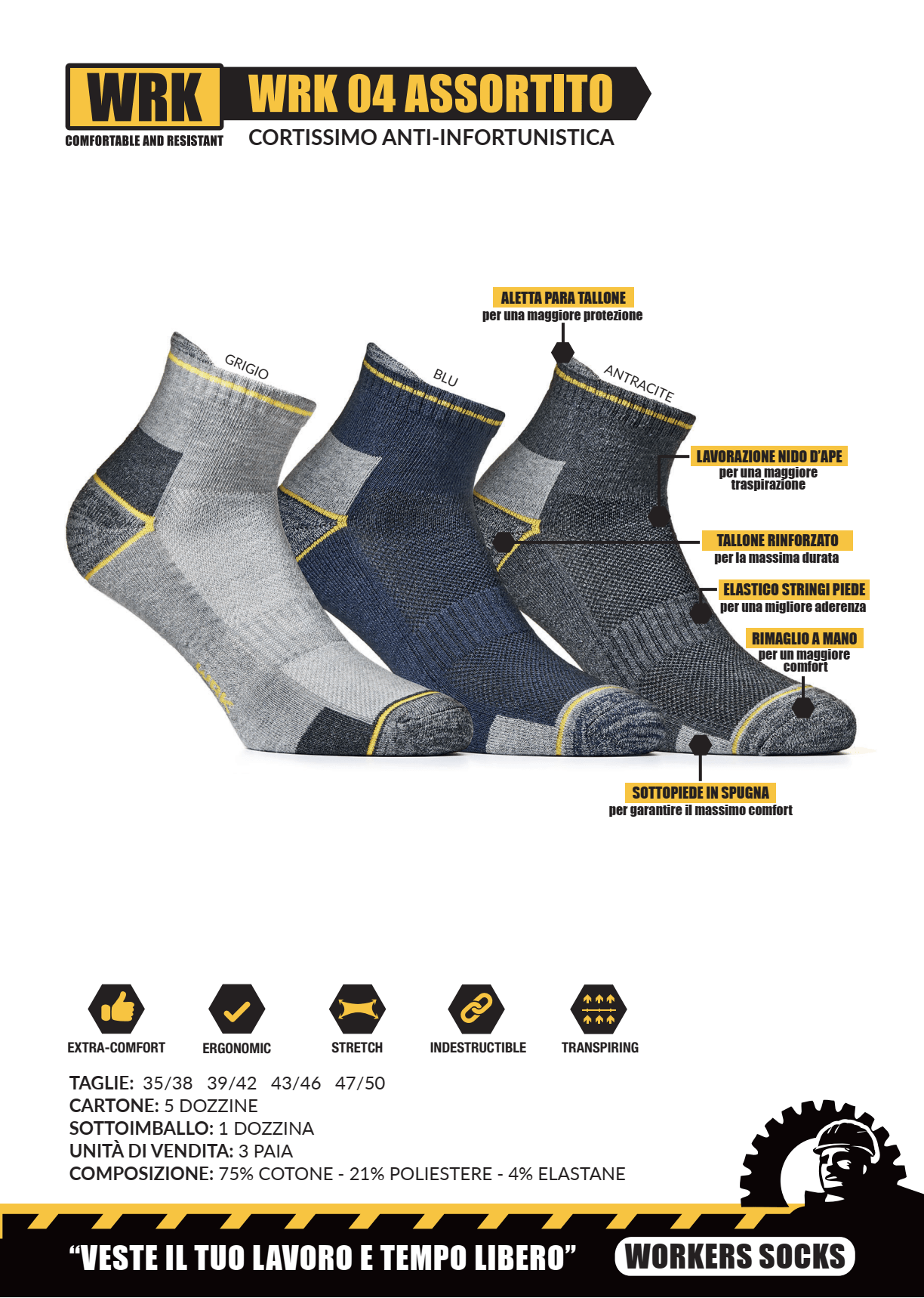 Calza cortissima anti-infortunistica confezione 3 paia